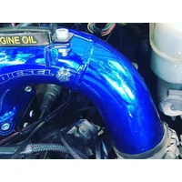 The Sinister Diesel intake elbow for the 5.9L Cummins replaces the restrictive stock piping on your for the 2003-2007 Dodge Truck with larger diameter CNC mandrel bent aluminum tubing. The increased diameter and large radius bend prevent restriction within the intake for a noticeable increase in performance and turbo spool while the stronger aluminum tubing and CNC machined base plate is designed to hold higher boost levels. Finished with in eye-catching Sinister's high-gloss blue powder coat, the Sinister Diesel 5.9L Cummins Intake Elbow provides an upgrade over the stock unit., Features and Benefits:Fully TIG-welded mandrel-bent tubing, with precision CNC machined billet aluminum flanges, Improved Throttle Response and Turbo Spool-up, Easy and quick installation with basic hand toolsIncludes:Blue Powder Coated Aluminum Intake Elbow, Required Hardware.