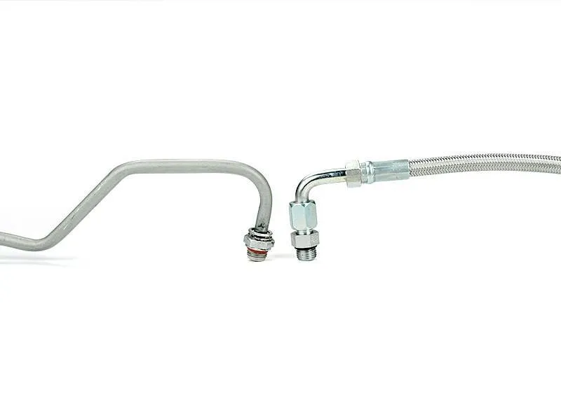 The Sinister Diesel Turbo Coolant Feed Line addresses one of the most common failures of the cooling system in the 6.7L Powerstroke. The feed line that provides cooling to the turbocharger can often develop a leak. The Sinister Diesel's Turbo Coolant Feed Line is constructed from braided stainless steel instead of a the OEM rigid feed line. The braided line is far more forgiving to vibrations and engine motion. It also utilizes a multi-ply silicone coolant hose instead of the OEM rubber section. For unsurpassed reliability, the Sinister Diesel Turbo Coolant Feed Line for the 6.7 Powerstroke is your go-to solution. Features:Stainless Steel Braided Coolant Line for vibration resistance, Multi-ply Silicone Coolant Hose for superior durability, Precision made, better than OEM fittings for a perfect fitIncludes:(1) Braided Stainless Coolant Line, (1) Multi-ply Silicone Coolant line, (1) Turbo coolant fitting, (2) Stainless Steel Hoseclamps