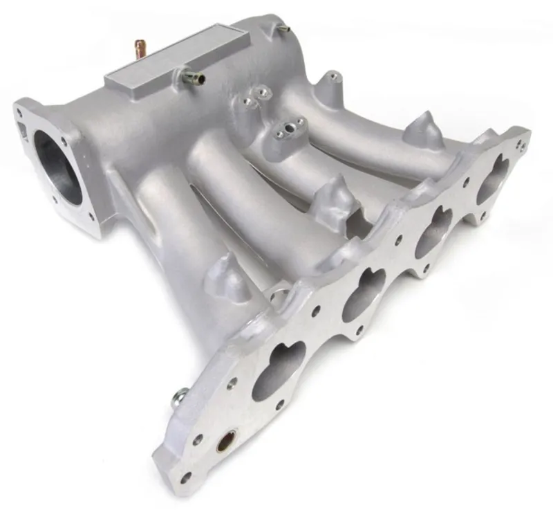 More than a decade ago, Skunk2's engineers looked to the popular Integra Type R intake manifold for inspiration and went back to the drawing board. Skunk2's Pro Series Intake Manifold for Hondas B-series VTEC engines (GS-R only) features a larger plenum and oversized runners when compared to the ITR manifold for maximum horsepower and torque gains. Instead of producing a manifold with a significantly oversized plenum and excessively short runners that would sacrifice mid-range power, the Pro Series manifold was designed for the 'street enthusiast' who wants more power but doesn't want to sacrifice mid-range performance to get it. The results are improved airflow, an enhanced venturi effect, and both mid-range and top-end power gains. Skunk2's cast-aluminum Pro Series Intake Manifolds for Honda's B-series engines are a direct-fit replacement for all B-series engines thanks to three separate flange designs and are compatible with all factory sensors and throttle bodies as large as 75mm. Pro Series Intake Manifolds offer horsepower and torque gains greater than competitors' manifolds but without compromising mid-range power output. The design incorporates specially tapered runners as well as a larger, tapered plenum that together preserve mid-range power but increase and accelerate airflow to allow for significant top-end power gains. Pro Series Intake Manifold runner exits are also machined to best match the cylinder head's ports. Skunk2's Pro Series Intake Manifold's shape and design also increases wave scavenging effects at the engine's ideal operating range, which allow for a broad increase in usable power. Skunk2 is a familiar name in the intake manifold business, with more than 10 years of experience designing, testing, and building them. Similar to OEM manifolds, Skunk2's Pro Series Intake Manifolds are shell-molded from 356-aluminum, CNC-machined for superior strength, a precise fit, and a high-quality finish, and vacuum-tested for quality.