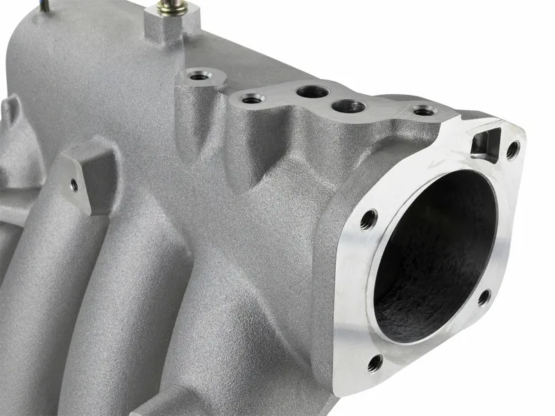 More than a decade ago, Skunk2's engineers looked to the popular Integra Type R intake manifold for inspiration and went back to the drawing board. Skunk2's Pro Series Intake Manifold for Hondas B-series VTEC engines (non-GS-R) features a larger plenum and oversized runners when compared to the ITR manifold for maximum horsepower and torque gains. Instead of producing a manifold with a significantly oversized plenum and excessively short runners that would sacrifice mid-range power, the Pro Series manifold was designed for the 'street enthusiast' who wants more power but doesn't want to sacrifice mid-range performance to get it. The results are improved airflow, an enhanced venturi effect, and both mid-range and top-end power gains. Skunk2's cast-aluminum Pro Series Intake Manifolds for Honda's B-series engines are a direct-fit replacement for all B-series engines thanks to three separate flange designs and are compatible with all factory sensors and throttle bodies as large as 75mm. Pro Series Intake Manifolds offer horsepower and torque gains greater than competitors' manifolds but without compromising mid-range power output. The design incorporates specially tapered runners as well as a larger, tapered plenum that together preserve mid-range power but increase and accelerate airflow to allow for significant top-end power gains. Pro Series Intake Manifold runner exits are also machined to best match the cylinder head's ports. Skunk2's Pro Series Intake Manifold's shape and design also increases wave scavenging effects at the engine's ideal operating range, which allow for a broad increase in usable power. Skunk2 is a familiar name in the intake manifold business, with more than 10 years of experience designing, testing, and building them. Similar to OEM manifolds, Skunk2's Pro Series Intake Manifolds are shell-molded from 356-aluminum, CNC-machined for superior strength, a precise fit, and a high-quality finish, and vacuum-tested for quality.
