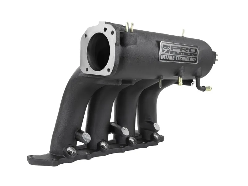 Each of Skunk2s Pro Series Intake Manifolds feature larger plenums and shorter, oversized runners when compared to the RBC, and are cast with thicker wall material, leaving room for further porting for high-horsepower applications. Instead of producing a manifold with a significantly oversized plenum and excessively short runners that would sacrifice mid-range power, Pro Series manifolds were designed for the street enthusiast who wants more power but doesnt want to sacrifice mid-range performance to get it. The results are improved airflow, an enhanced venturi effect, and both mid-range and top-end power gains. Pro Series Intake Manifolds offer horsepower and torque gains greater than the popular RBC manifold but without compromising mid-range power output. The design incorporates runners that are similar in length to the RBCs but with larger bores, a special tapered design, as well as a larger, tapered plenum that together preserve mid-range power but increase and accelerate airflow to allow for significant top-end power gains. Pro Series Intake Manifold runner exits are also machined and hand-finished to best match the cylinder heads ports. Skunk2s Pro Series Intake Manifolds shape and design also increases wave scavenging effects at the engines ideal operating range, which allow for a broad increase in usable power. Skunk2 is a familiar name in the intake manifold business, with more than 10 years of experience designing, testing, and building them. Similar to OEM manifolds, Skunk2s Pro Series Intake Manifolds are shell-molded from 356-aluminum, CNC-machined for superior strength, a precise fit, and a high-quality finish, and vacuum-tested for quality. Each manifold is molded with smooth transitions from the throttle body opening to the plenum to the runners with clean parting lines for an optimal finish, both inside and out and features a genuine Skunk2 nameplate.