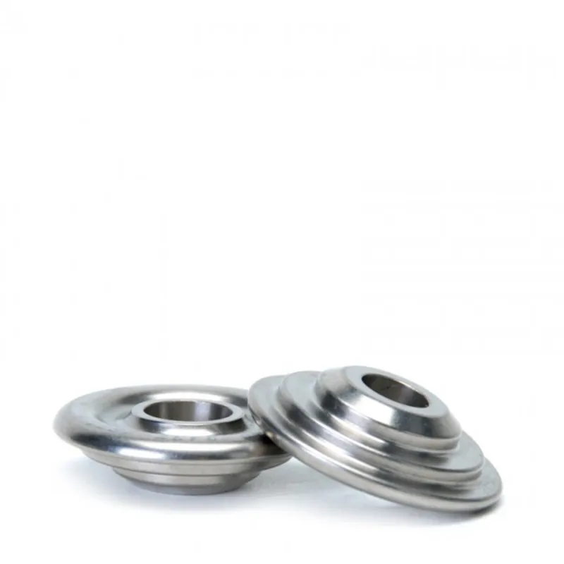 Skunk2's industry-leading Titanium Retainers for Honda's K-series engines are designed to significantly reduce valvetrain mass, resulting in more horsepower and improved valvetrain stability. Unlink other retainers, Skunk2 Titanium Retainers feature radius-cut edges for additional rocker arm clearance and reduced weight, strategically positioned lightening grooves, and reduced overall heights for better valve seal clearance and even further weight reduction. All Skunk2 Titanium Retainers are manufactured using the latest 3D CAD (Computer Aided Design) and FEA (Finite Element Analysis) to ensure that each is optimized for strength as well as for reduced weight. Skunk2 engineers then test and prove their designs on the engine dyno as well as the race track. Once approved for manufacturing, only medical-grade titanium that's been ultrasonically inspected and certified is used. Following CNC machining, each retainer is then individually inspected to ensure proper hole diameter, taper, and that each are free from machining defects to ensure proper installed valve spring heights and pressures. Finally, each Titanium Retainer is serialized for your protection, including valuable information, like material batch specifics as well as production and inspection dates. Skunk2 designs, develops, and tests its entire valvetrain lineup in-house to ensure superior quality and maximum performance gains. During development, each valvetrain component is tested both on the dyno and the road, including 11,000 rpm drag racing engines and 17,000 rpm superbikes. Manufactured from the best materials available, Skunk2 valvetrain components provide exceptional performance, reliability, and quality and remain standard-issue on each Skunk2 vehicle that we build and support.