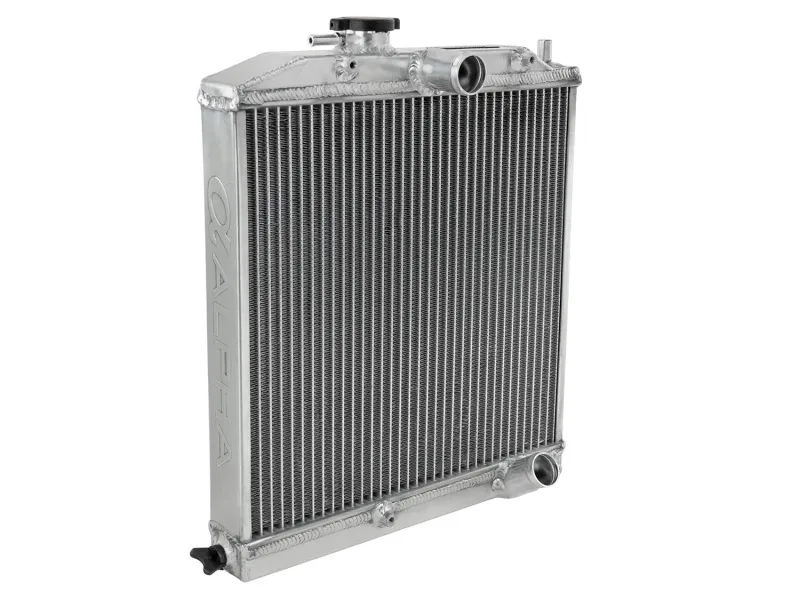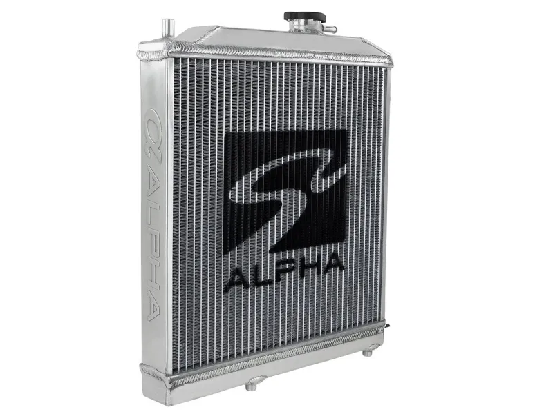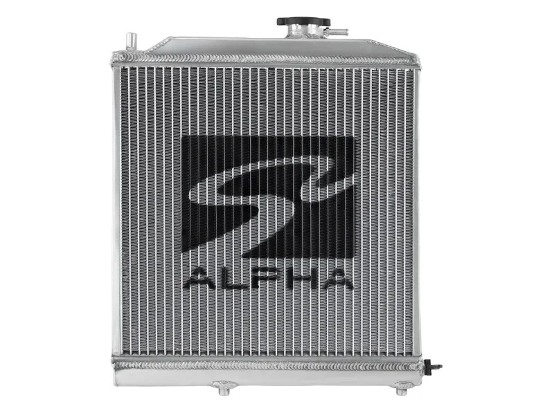 Skunk2's all-aluminum, half-size Alpha Series Radiator is a direct-fit upgrade designed to dramatically increase both cooling efficiency and engine performance. Alpha Series Radiators are manufactured from lightweight and durable aluminum, feature 100-percent brazed cores, and include polished end tanks with Skunk2's signature Alpha logo embossed along each side. Each Alpha Series Radiator features a dual-core design, high-efficiency fins for maximum cooling capabilities, and includes a genuine Skunk2 Radiator Cap for maximum performance and a premium appearance. Each Alpha Series Radiator also includes provisions for the OEM cooling fan and 1.25-inch inlets and outlets for compatibility with the original radiator hoses as well as most aftermarket ones. Skunk2's commitment to producing high-quality components means that each Alpha Series Radiator meets or exceeds original equipment manufacturer standards, that each radiator may be installed without modification to the vehicle, and is compatible with OEM hoses, cooling fans, and shrouds. (Note: Some engine swap applications may require custom radiator hoses and/or cooling fans.) Skunk2's Alpha Series Radiators are the perfect addition to any high-performance vehicle and are designed for the street, the track, or even OEM replacement purposes. Alpha Series Radiators are built to withstand harsh elements as well as against years of under-hood heat cycling. Each Alpha Series Radiator adheres to strict quality control standards and careful packaging, resulting in tubes and fins capable of optimal flow and efficient heat transfer.