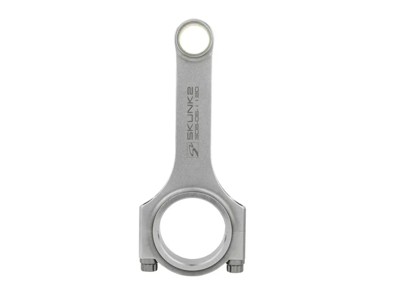 Skunk2 is proud to introduce its all-new Alpha Series Connecting Rods, available for most popular Honda and Acura applications. Alpha Series Rods are forged from select 4340 chromoly steel and feature a straight H-beam design, resulting in the ultimate strength-to-weight ratio. 4340 chromoly is one of the strongest materials available, however, not all 4340 chromoly is the same. As such, Skunk2 relies on extensive material testing and works closely with its foundry to produce high-quality rods at an affordable price. Comprehensive heat-treating, tempering, and shot-peening processes together ensure that each Alpha Series Rod remains consistent and strong. Finally, each rod is magna-fluxed to ensure integrity and that each process has been completed thoroughly and according to Skunk2s rigid specifications. Skunk2s engineers spent nearly three years developing and testing its straight H-beam rod design. The results are one of the strongest beam configurations available, capable of handling more than 900 hp. Engineers made use of FEA (Finite Element Analysis) to determine high-stress points and implemented features to reduce wear and increase strength. Skunk2s straight design distributes stress across a larger area when compared to tapered rods, providing additional support where necessary. Alpha Series Rods are manufactured from two-piece forgings, resulting in optimal grain orientation along the rod cap for increased strength. By orienting the metals grain in the direction of stress along the rod cap, perpendicular to the stress exerted along the beam, strength is significantly increased. Skunk2s two-piece forgings provide a precision-tight fit between the rods cap and its beam without resorting to the brittle materials required by other processes. Alpha Series Rods also feature dual oil passages at their pin ends, providing additional lubrication and cooling, which leads to an even stronger, more durable rod. Unlike other designs, Skunk2s carefully positioned, offset oil passages help deliver lubrication around the entire wrist pin, during each phase of the engine cycle. Connecting rod bolts endure more stress than any other engine fastener. Each Alpha Series Rod features high-quality, Skunk2-branded, 3/8-inch ARP2000 bolts. ARP2000 rod bolts are forged, heat-treated, precision-machined, and capable of clamping loads as high as 220,000 psi. Precision-machined, bronze wrist pin bushings are also fitted to each Alpha Series Rod for increased wear resistance, and are compatible with most aftermarket pistons without additional machining. Not all forged H-beam rods are the same. Only Skunk2s Alpha Series Rods feature our unique design, precision machining, and are capable of handling more than 900 hp, all at an economical price. *FEATURES:* * Precision Machined * 3/8-Inch ARP2000/Skunk2 Bolts * Shot-Peened For Reduced Fatigue * Bronze Wrist Pin Bushings * Laser-Etched Skunk2 Logo For Authenticity * Fatter, H-Beam Design Without Drastic Weight Increase * Pin End Compatible With Most Pistons Without Machining * Dual-Pin Oil Passages For Increased Lubrication And Strength * 900+ HP Capable * Balanced +/- 1 Gram * Magna-flux Inspected * Heat-Treated * FEA Analyzed