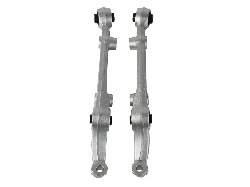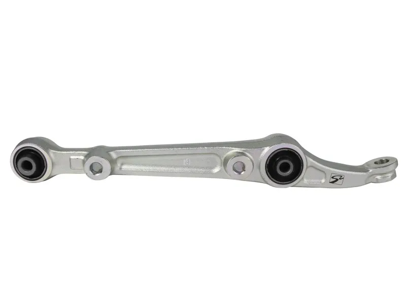 Ideal for street and race applications, Skunk2 Rear Lower Control Arms replace your stock arms while retaining factory suspension geometry. The Skunk2 Rear Lower Control Arms are forged from aircraft quality AL2024 billet aluminum, precision CNC machined and are over 25% lighter than stock arms. Skunk2 Lower Control Arms feature adjustable sway bar mounting holes so you can fine tune the feel and balance of the rear suspension, and also feature low deflection polyurethane bushing which act as bearings for quicker response and a more positive feel. By allowing the arm to rotate freely about the bushing, Skunk2 eliminated the tearing and unseating commonly found with fixed rubber bushings. Rear suspension performance and feel is further enhanced when the Skunk2 Rear Lower Control Arm is used in conjunction with Skunk2 Rear Camber Kits, Lower Arm Bars, and Strut Tower Bars. Skunk2 Lower Control Arms are available in JDM Gold or Hard Anodized