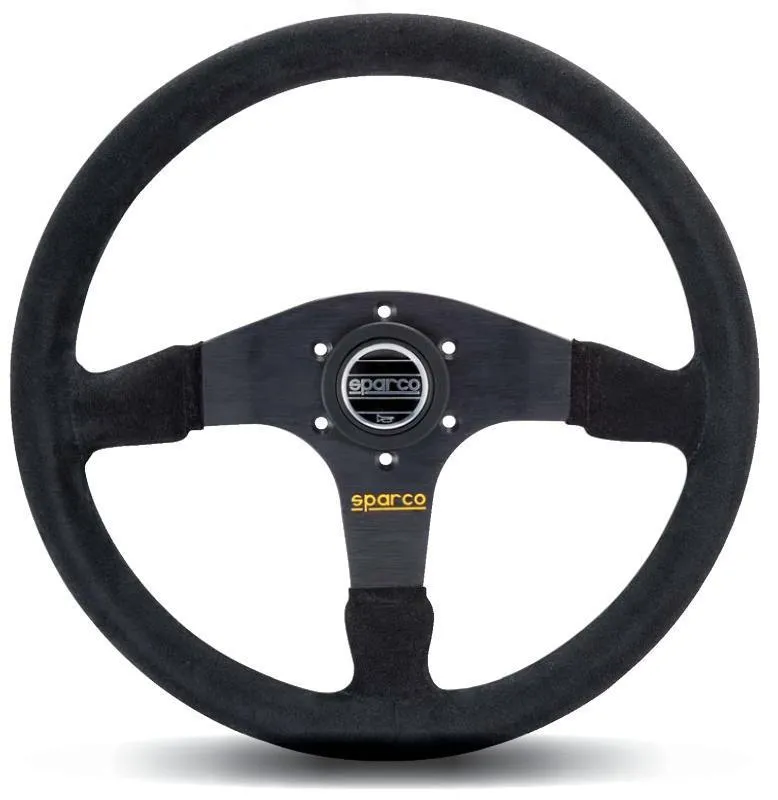 Sparco steering wheels are designed to improve grip and comfort for driving precision. Available in different diameters, depths, and materials which will satisfy every driving situation from street to track. The Sparco R375 steering wheel is a 350mm diameter, 3 spoke flat steering wheel trimmed in black suede with a Sparco logo. It is a competition steering wheel designed for use in saloon racing or rally cars. Supplied with horn button. * Diameter - 350mm * Dish (depth front to back) - 36mm * Cover Material - Suede