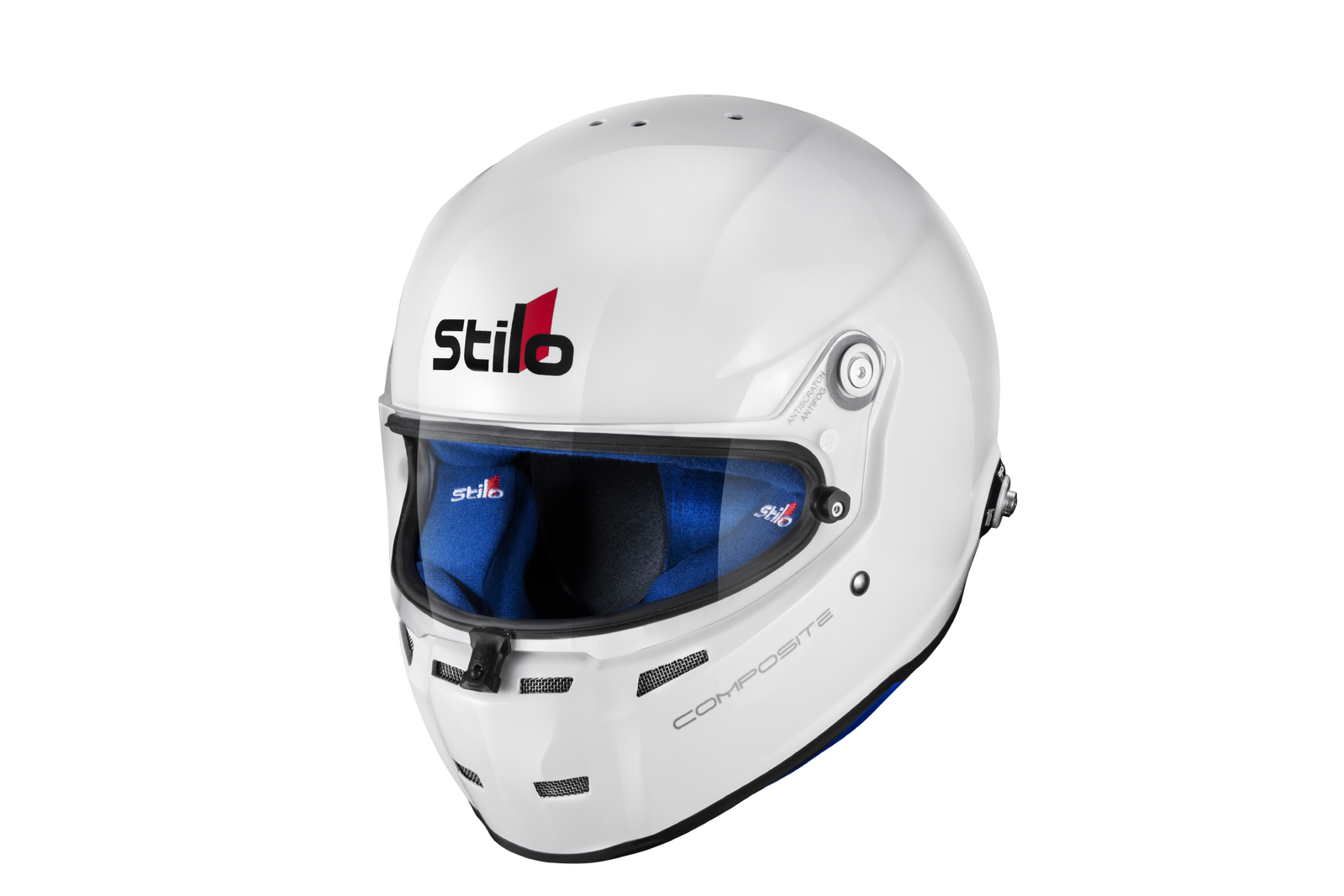 The Stilo ST5 FN Composite helmet is an iconic helmet used in a variety of race types. Crafted from a Multi Sandwich Fiberglass layup and exceeding the Snell SA2020 and FIA 8859 rating, this helmet is predominantly used in open cockpit environments and features an array of improvements from the ST4 Helmet. Weighing in at 3.39lbs in the small shell size and 3.63lbs in the large shell size this helmet comes standard with a sleek white color with blue interior.