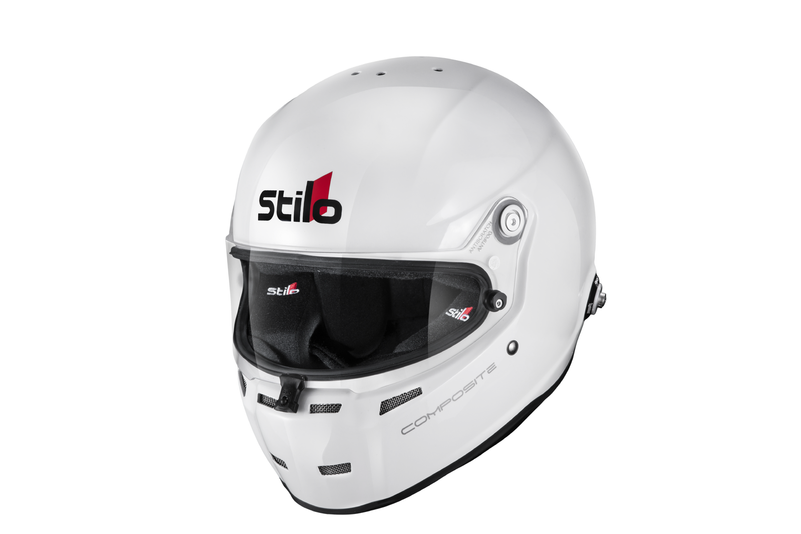 The Stilo ST5 FN Composite helmet is an iconic helmet used in a variety of race types. Crafted from a Multi Sandwich Fiberglass layup and exceeding the Snell SA2020 and FIA 8859 rating, this helmet is predominantly used in open cockpit environments and features an array of improvements from the ST4 Helmet. Weighing in at 3.39lbs in the small shell size and 3.63lbs in the large shell size this helmet comes standard with a sleek white color with black interior.