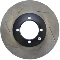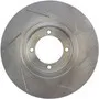 Excessive heat can cause resins in your brake pad to vaporize or "outgas." As the brake pad wears, the used friction material turns into a fine dust. This boundary layer of heat, gas and dust builds up between the pad and rotor surfaces and inhibits performance. Here's where StopTech SportStop slotted brake rotors make a big difference. StopTech SportStop Slotted Brake Rotors are a true performance rotor and feature: * Power Alloy castings (on select applications) - Engineered Performance Rotor - Superior resistance to cracking due to thermal stress - Increased molybdenum (higher carbon)content that extends reliability, service life and helps reduce NVH noise issues - Rotor material is a direct descendant of the patented AeroRotor from StopTech * Introducing directional curve vane design (on select applications) - Improved vane design or OE equivalent on all rotors - Center split castings * New short slot design runs perpendicular to the vane to preserve rotor strength. * Direct OE Replacement * Improved wet weather response * Increased initial bite * Double disc ground for a consistent friction surface and Improved pad bed-in * Mill balanced * Black E-Coated non-friction surfaces on Power Alloy rotors * Enhances open wheel appearance