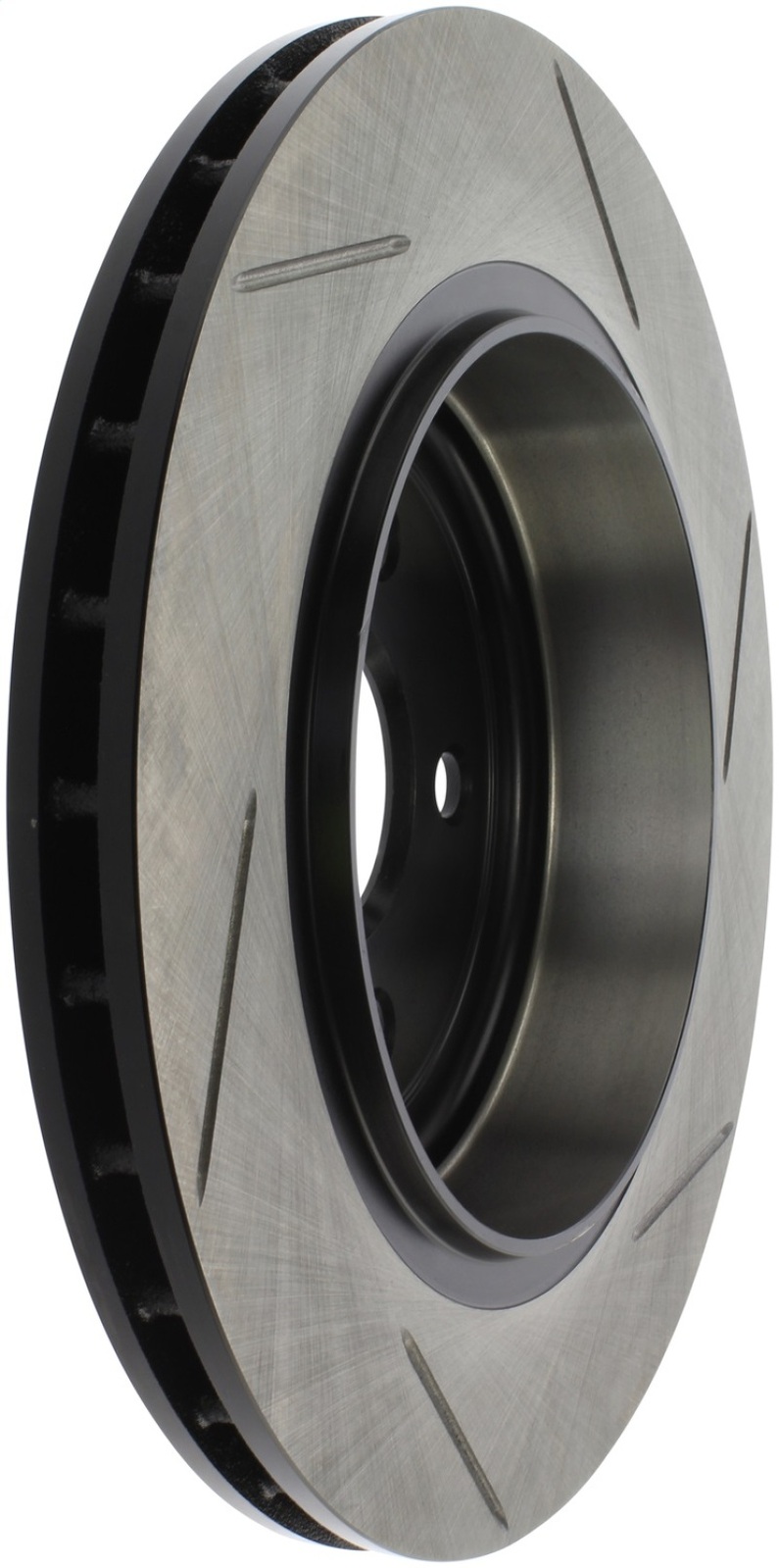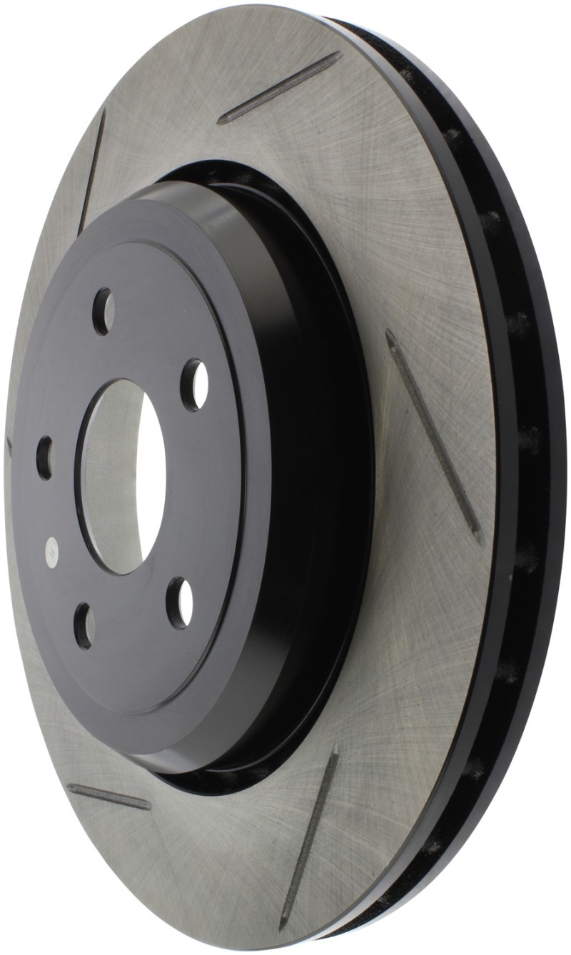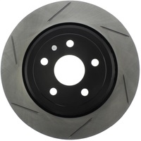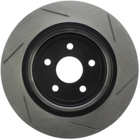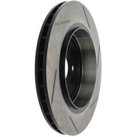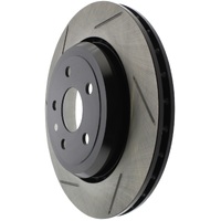 Excessive heat can cause resins in your brake pad to vaporize or "outgas." As the brake pad wears, the used friction material turns into a fine dust. This boundary layer of heat, gas and dust builds up between the pad and rotor surfaces and inhibits performance. Here's where StopTech SportStop slotted brake rotors make a big difference. StopTech SportStop Slotted Brake Rotors are a true performance rotor and feature: * Power Alloy castings (on select applications) - Engineered Performance Rotor - Superior resistance to cracking due to thermal stress - Increased molybdenum (higher carbon)content that extends reliability, service life and helps reduce NVH noise issues - Rotor material is a direct descendant of the patented AeroRotor from StopTech * Introducing directional curve vane design (on select applications) - Improved vane design or OE equivalent on all rotors - Center split castings * New short slot design runs perpendicular to the vane to preserve rotor strength. * Direct OE Replacement * Improved wet weather response * Increased initial bite * Double disc ground for a consistent friction surface and Improved pad bed-in * Mill balanced * Black E-Coated non-friction surfaces on Power Alloy rotors * Enhances open wheel appearance