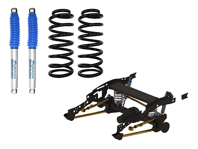 This kit is supplied with everything you need to convert your vehicle from leaves to coils except the coils and shocks, this allows you to run your own selection of coils or shocks.