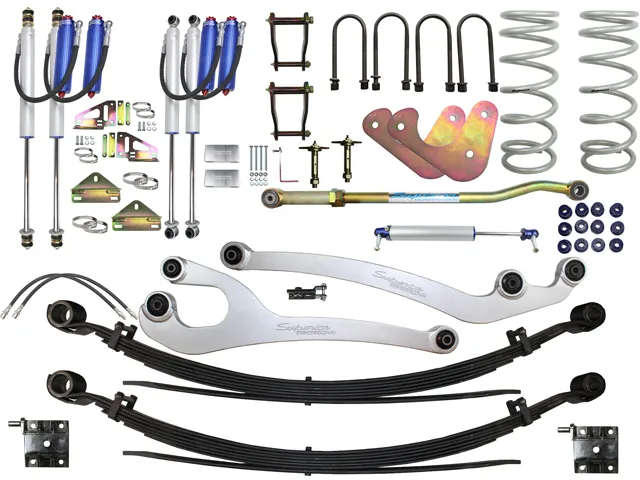 Superior Engineering has put together a 3 inch "Super Flexy" lift kit Suitable For Toyota LandCruiser 78/79 Series 6 Cyl with Superior Remote Reservoir shock absorbers.