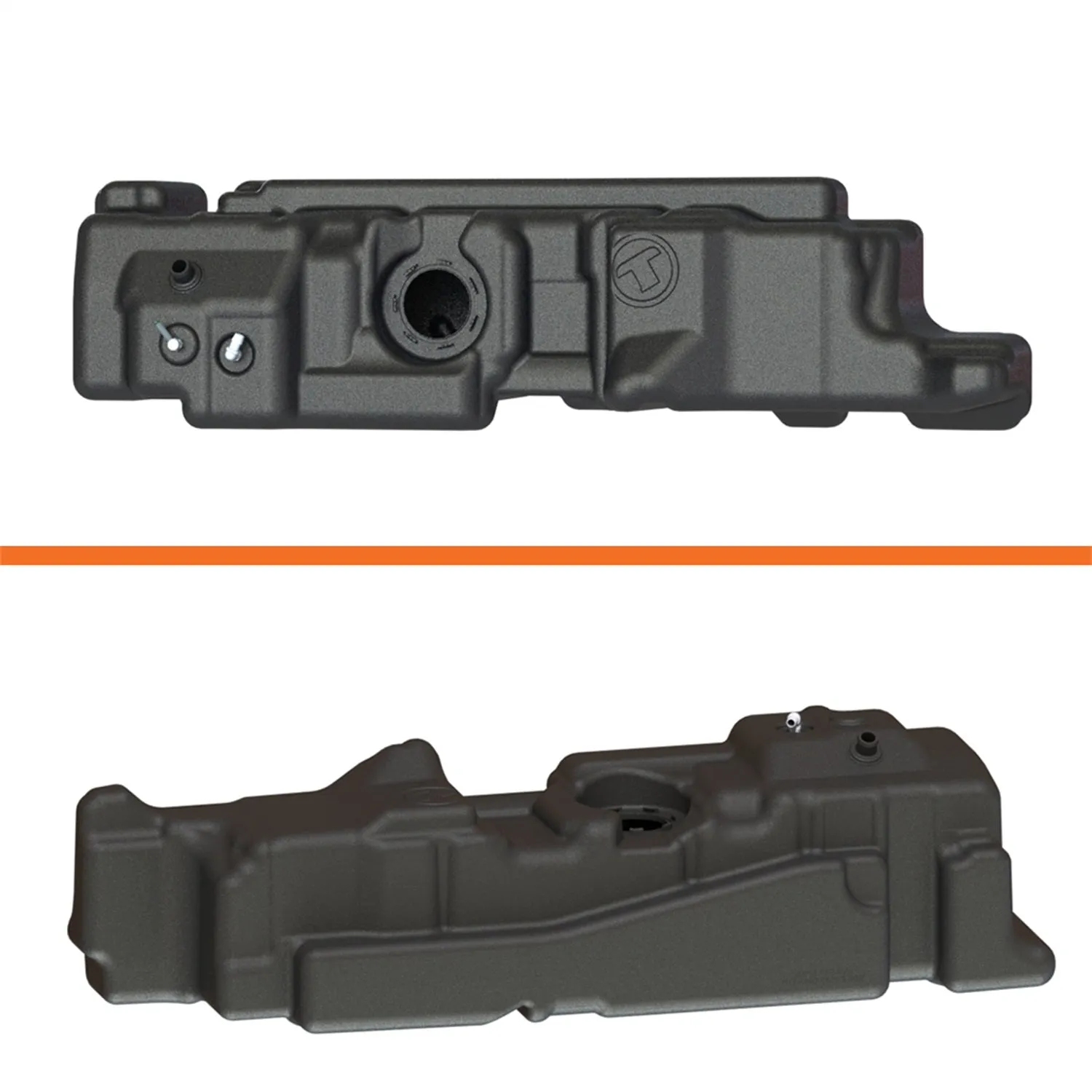 60 Gallon (227 Liters)*, extra capacity, extra heavy duty mid-ship, replacement tank for the ultimate in fuel range. Tank comes complete with black coated, galvanized or stainless steel, mounting straps. Tapered tank features exclusive low fuel trap design so most every gallon can be used, and is approximately only 2.5 in. deeper than the stock OEM tank. Tank hangs approximately only 1 in. below bottom of the stock fuel tank shield bracket (on vehicles so equipped). Very similar in appearance to original equipment tank. TITAN's Generation 6 tanks feature the TITAN Torque Ring(TM) OEM style sending unit mounting system for easy, positive installation. This new Ford tank is made of our famous military grade, cross-linked polymer (XLHDPE). It's at least ¼ in. thick and built to outlast all competitors. It's tougher than steel and more durable than aluminum. Like all fine TITAN(TM) products, this new design has undergone extensive testing. Our legendary products are so tough and well-proven that we back them with a Lifetime Warranty!+ No cutting, drilling or fabrication required for installation. Tank body is pre-marked with optimal location for sump installation of an aftermarket 'performance' fuel pump system.