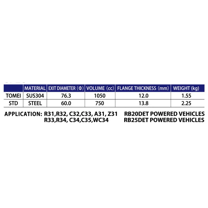 With a smooth inner walls, high flow capacity, easy to install flange design for an easy direct bolt on application.Compatible with the stock turbo and the Tomei ARMS Turbo will contribute with improving the power output. Designed to suit a ?76.3mm front pipe.