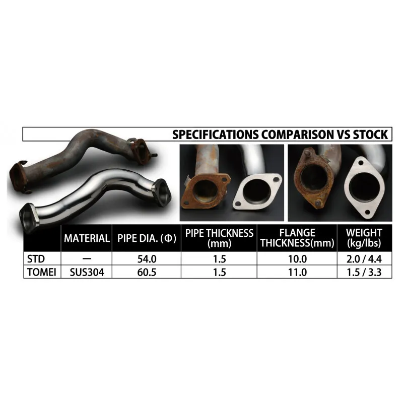 The stock joint pipe is not only narrow, it also has flattened sections which severely limits the performance gains from fitting a high efficiency manifold. However, our new pipe has its sections welded together to maintain a wide ?60.5 diameter throughout with additional weld beads on the inside for rigidity.