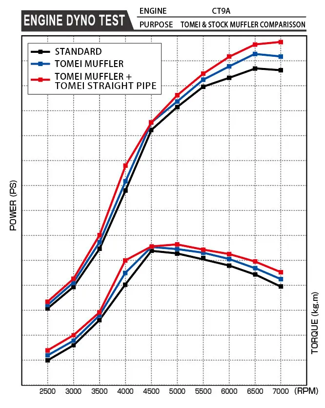 • SILENCER CASE- This part is made from Titanium with the pipe size of ?152 and 1mm thickness. The oversized shell design optimizes exhaust gas flow which helps with power gains. Then with the embossed Tomei logo and beautiful heat gradation colouring gives it the finishing touch that you'd expect.