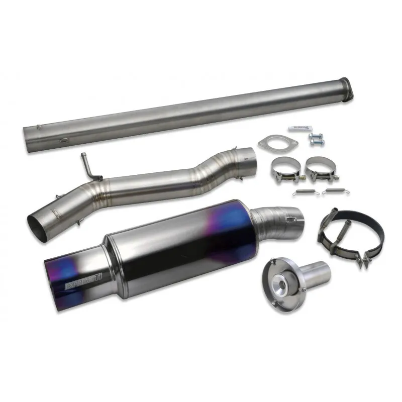 We wanted to make an exhaust system that will allow you enjoy your car more from the sound of the engine. Increased performance gains with the best power and response was the main target points. Through the use of minimal bends and the optimum pipe size we were able to achieve this goal. To improve the performance of the engine with just the muffler system alone isn't easy. So with the use of our Titanium material we were able to further reduce unwanted weight without compromise to the products overall strength. So with the strong commitment to our values and targets we were able to make a great product for all to enjoy.