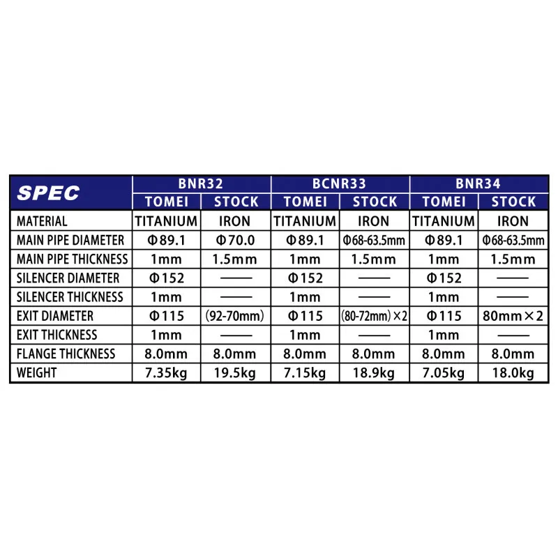 • SILENCER CASE- This part is made from Titanium with the pipe size of ?152 and 1mm thickness. The oversized shell design optimizes exhaust gas flow which helps with power gains. Then with the embossed Tomei logo and beautiful heat gradation colouring gives it the finishing touch that you'd expect.