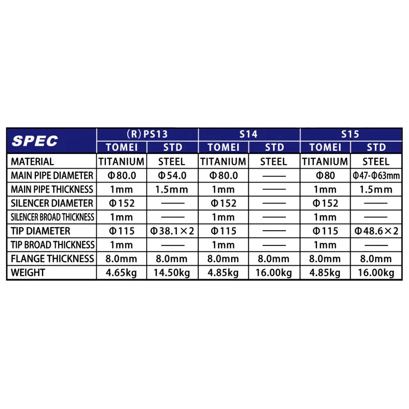 • SILENCER CASE- This part is made from Titanium with the pipe size of ?152 and 1mm thickness. The oversized shell design optimizes exhaust gas flow which helps with power gains. Then with the embossed Tomei logo and beautiful heat gradation colouring gives it the finishing touch that you'd expect.