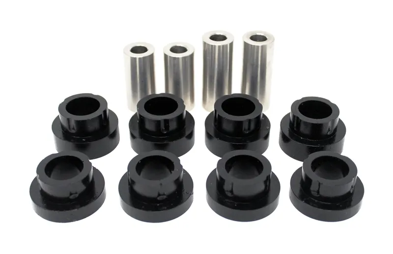 Torque Solution polyurethane control arm bushings replace the soft OEM inner rubber material that over time deteriorates and fails. These will provide improved traction and reduced wheel hop without too much vibration, as they are made from 75a durometer polyurethane and utilize stainless steel pins.