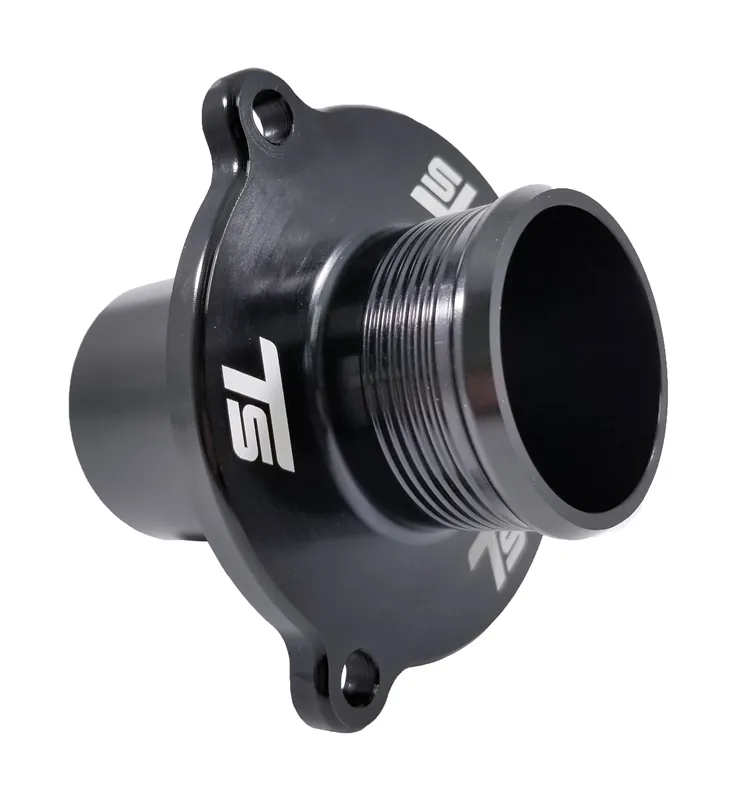 The Torque Solution Turbo Muffler Delete for 1.8T and 2.0T engines with IHI Turbochargers. Made from 1 piece 6061 Billet Aluminum. The Turbo Muffler Delete replaces the highly restrictive OEM Turbo Muffler.