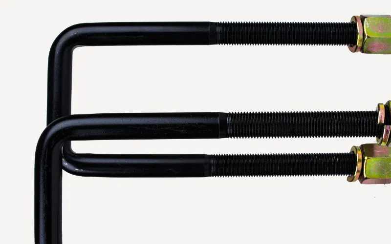 When U-bolts are tightened to secure the leaf pack in the vehicle from factory, the metal is stretched as a normal part of this process. It is important that U-bolts be replaced when a suspension system is changed, as a stretched U-bolt has lost its integral strength. The U-bolt will appear tight when re-used, but in fact it isn’t, this puts undue pressure on the centre bolts in the springs, causing them to move or snap which in turn allows the diff to move and the leaves to spread. Tough Dog U-bolts are manufactured using high tensile steel & are designed with the correct length of thread for larger, heavy duty leaf spring packs.