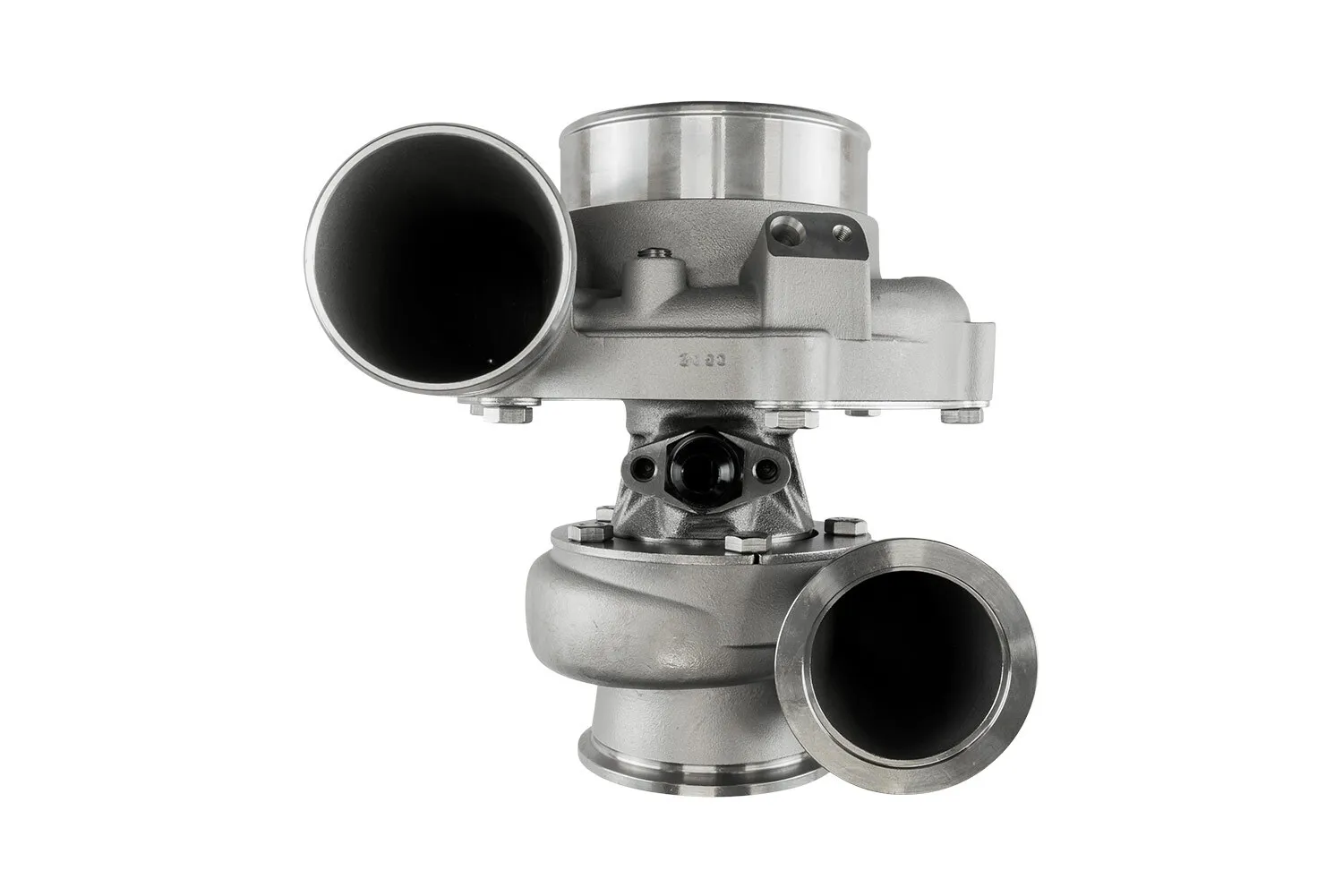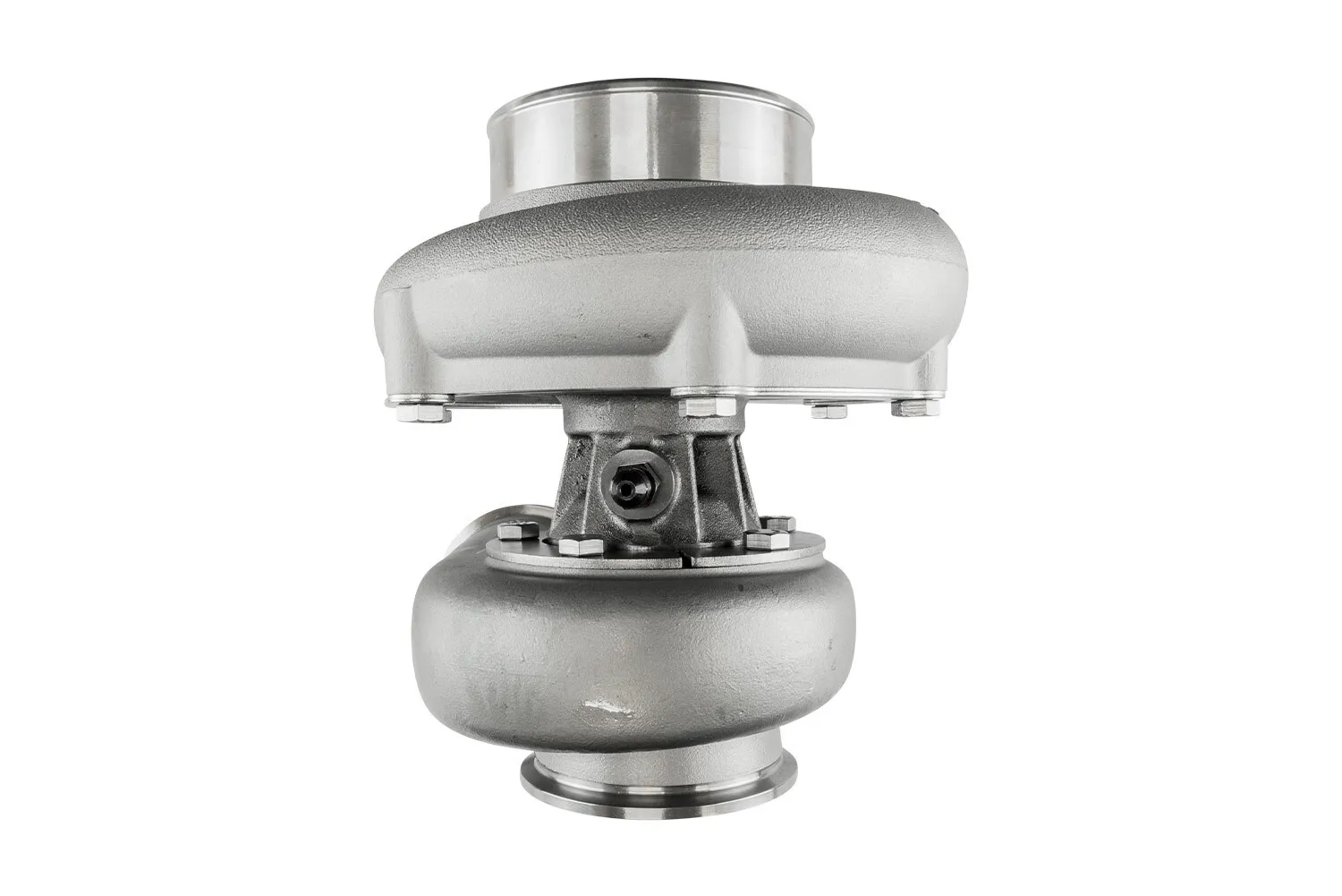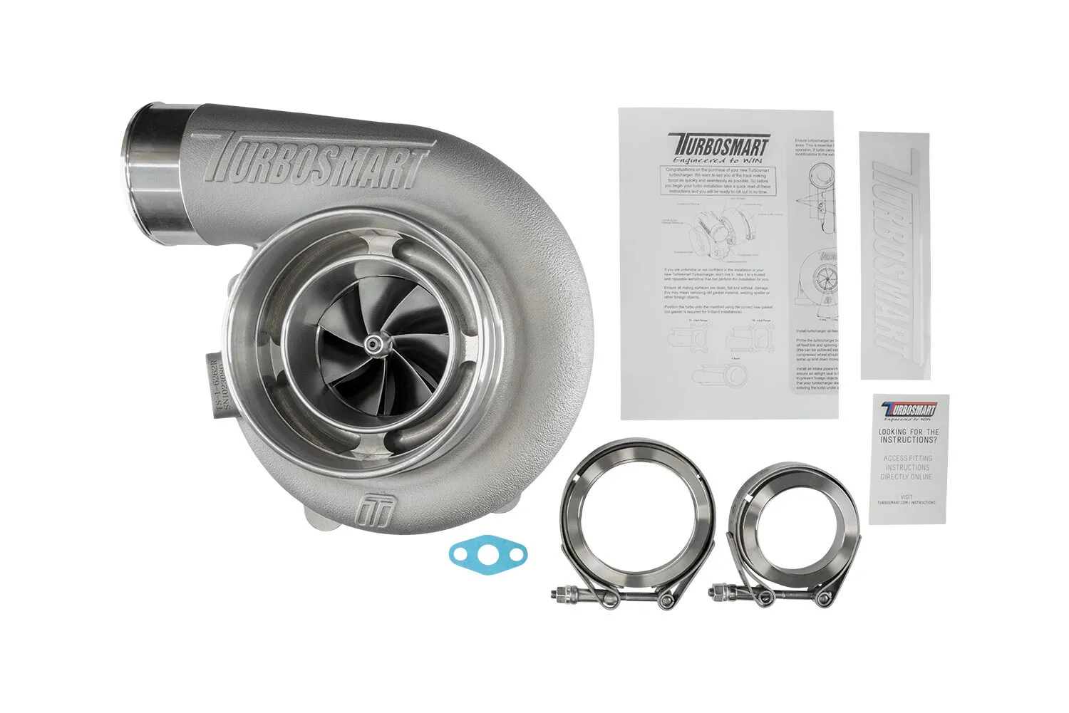 Smaller, Lighter and Faster - Turbosmart's turbocharger series has been developed to leverage modern materials, design and manufacturing techniques to create a turbocharger range that meets the demands of both motorsport, and performance enthusiasts alike. Every Turbosmart turbocharger comes standard with everything you need for installation, weld flanges, V-band clamps, gaskets, oil feed and drain fittings are included. The TS-1 series are oil cooled turbochargers with lightweight investment cast turbine housings, a proprietary bearing and main shaft combination which will provide transient response you never knew possible with the type of performance, quality, reliability and support you've come to know Turbosmart for. The ultra-low rotating mass of our unique bearing and shaft assembly is matched to aggressive compressor aerodynamics to ensure high levels of performance at lower shaft speeds which is mated with a unique turbine wheel to ensure power at high loads and flow is maintained. All Turbosmart turbochargers have been designed with an engine end-to-end approach aiming to achieve power through reduced back pressure and high performance turbines - while being smaller, lighter and faster in response than other solutions on the market. Available In TS-1 oil cooled turbochargers TS-2 oil and water cooled turbochargers V-Band, various T3 Flange and T4 Flange options Reverse rotation (Selected Sizes) Various AR’s options Internal and external wastegated options available Features Unparalleled transient response Aggressive aerodynamics with 7+7 splitter wheels Lightweight 310s stainless steel investment cast turbine housings Lightweight, Aluminium compressor covers CFD driven designed housings for optimal AR’s and flow T14 Inconel turbine wheel for extreme EGT’s VSR speed balanced Proprietary dual ceramic bearing system Integrated Iron backplate on center housing Specifications Compressor Inlet: 4" / 101.6mm Compressor Inducer: 62mm Turbine Inlet: V-Band (2.25") Turbine Exducer: 62mm Turbine AR: 0.82 Turbine Outlet: V-Band (3.00") Weight: 6.06kg / 13.3lbs Horsepower Rating: 650-800HP