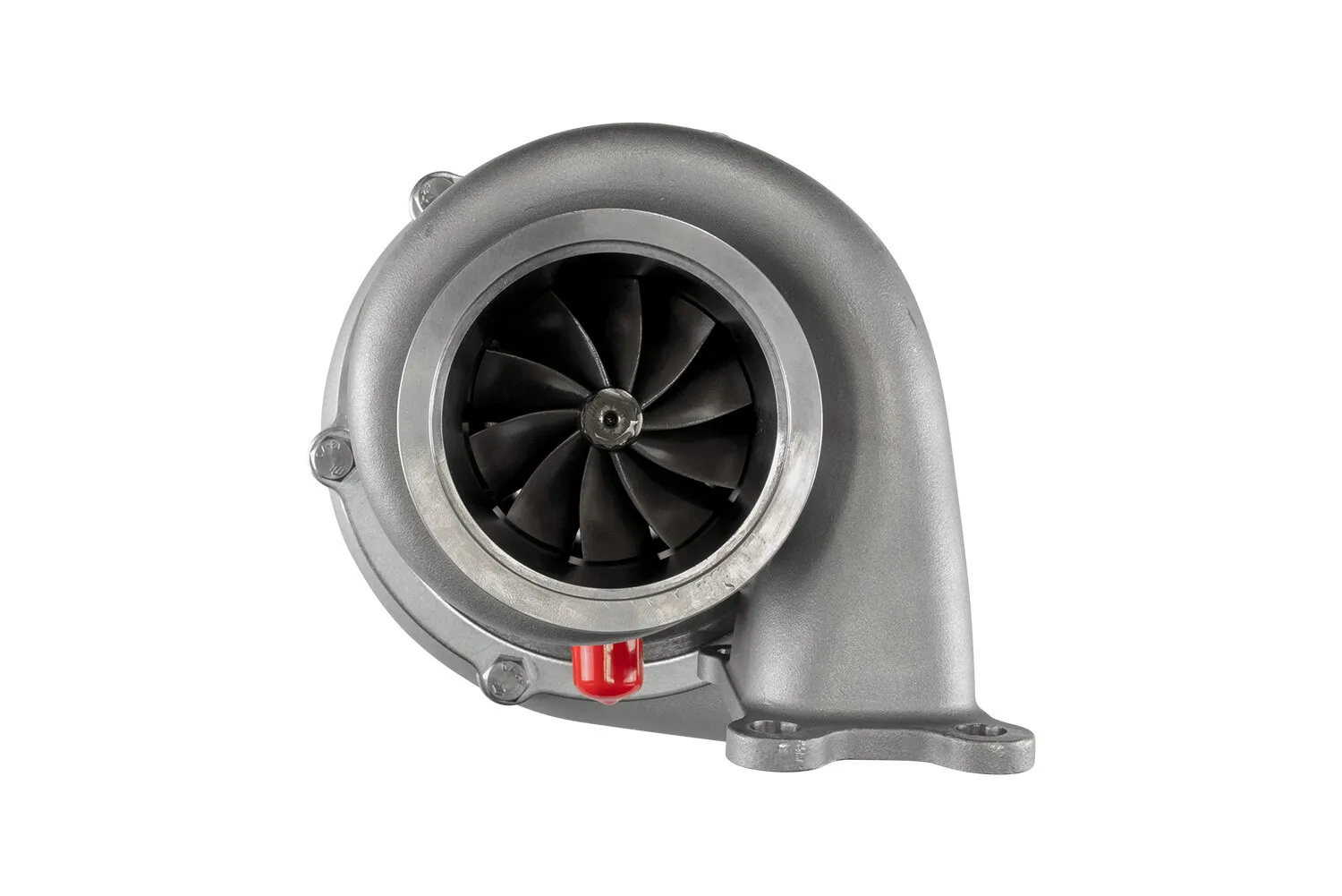 Smaller, Lighter and Faster - Turbosmart's turbocharger series has been developed to leverage modern materials, design and manufacturing techniques to create a turbocharger range that meets the demands of both motorsport, and performance enthusiasts alike. Every Turbosmart turbocharger comes standard with everything you need for installation, weld flanges, V-band clamps, gaskets, oil feed and drain fittings as well as water feed and return fittings are included. The TS-2 series are water and oil cooled turbochargers with lightweight investment cast turbine housings, a proprietary bearing and main shaft combination which will provide transient response you never knew possible with the type of performance, quality, reliability and support you've come to know Turbosmart for. The ultra-low rotating mass of our unique bearing and shaft assembly is matched to aggressive compressor aerodynamics to ensure high levels of performance at lower shaft speeds which is mated with a unique turbine wheel to ensure power at high loads and flow is maintained. The TS-2 turbocharger series has taken an engine end-to-end approach aiming to achieve power through reduced back pressure and high performance turbines - While being smaller, lighter and faster in response than other solutions on the market. Available In TS-1 oil cooled turbochargers TS-2 oil and water cooled turbochargers V-Band, various T3 Flange and T4 Flange options Reverse rotation (Selected Sizes) Various A/R options Internal and external wastegated options available Features Unparalleled transient response Aggressive aerodynamics with 7+7 splitter wheels Lightweight 310s stainless steel investment cast turbine housings Lightweight, Aluminium compressor covers CFD driven designed housings for optimal A/R's and flow T14 Inconel turbine wheel for extreme EGT's VSR speed balanced Proprietary dual ceramic bearing system Integrated Iron backplate on center housing Specifications Compressor Inlet: 4" / 101.6mm Compressor Inducer: 64mm Turbine Inlet: T3 Flange Turbine Exducer: 66mm Turbine AR: 0.82 Turbine Outlet: V-Band (3.00") Weight: 6.06kg / 13.3lbs Horsepower Rating: 750-930HP
