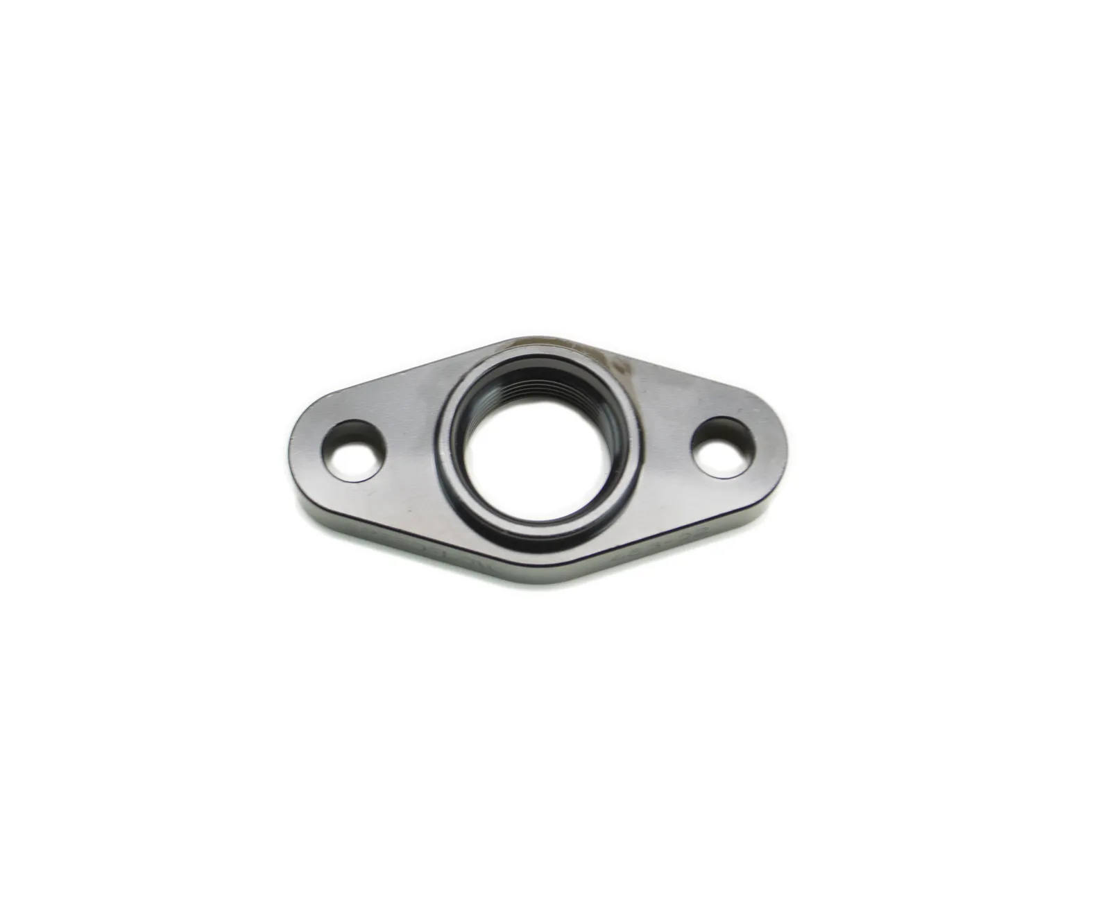 Billet Turbo Drain adapter with Silicon O-ring. 52mm Mounting Holes - T3/T4 style fit. Anodized Black.