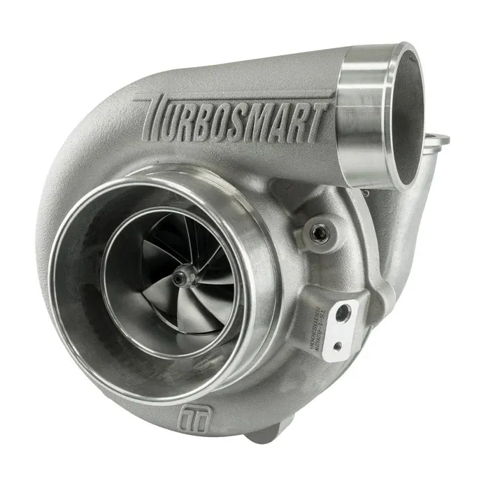 Proprietary dual ceramic ball bearing system, oversized shaft hub with drastically improved oil sling, dual gas rings for improved gas sealing, optimised compressor backplate and compressor wheel integration for improved air management, tapered compressor wheels for increased strength, one piece integrated backplates for improved chassis rigidity. Turbosmart compressor housings are designed with velocity in mind to improve cylinder filling. Turbine housings are designed to compliemt Turbosmart's unique low pressure turbine wheel aerodynamics and reduce exhaust back pressure. 2618-T6 forged and CNC milled compressor wheels designed with aggressive aerodynamics leverage the ultra responsive bearing and shaft combination for increased airflow at all shaft speeds. Lightweight, aluminium compressor covers feature CFD drive and optimised A/R designs with anti-surge inlets, built-in speed and boost reference ports.