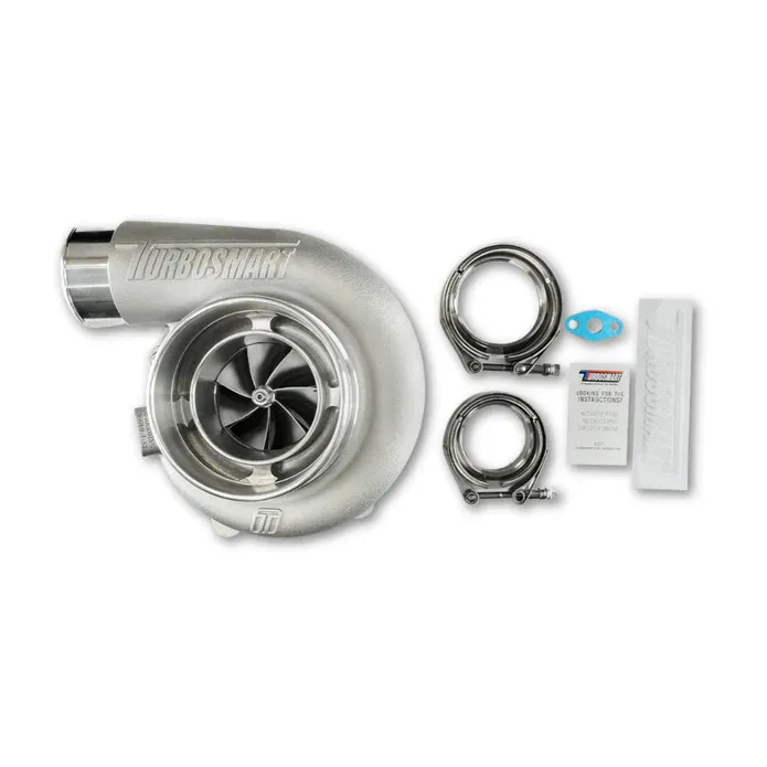Proprietary dual ceramic ball bearing system, oversized shaft hub with drastically improved oil sling, dual gas rings for improved gas sealing, optimised compressor backplate and compressor wheel integration for improved air management, tapered compressor wheels for increased strength, one piece integrated backplates for improved chassis rigidity. Turbosmart compressor housings are designed with velocity in mind to improve cylinder filling. Turbine housings are designed to compliemt Turbosmart's unique low pressure turbine wheel aerodynamics and reduce exhaust back pressure. 2618-T6 forged and CNC milled compressor wheels designed with aggressive aerodynamics leverage the ultra responsive bearing and shaft combination for increased airflow at all shaft speeds. Lightweight, aluminium compressor covers feature CFD drive and optimised A/R designs with anti-surge inlets, built-in speed and boost reference ports.