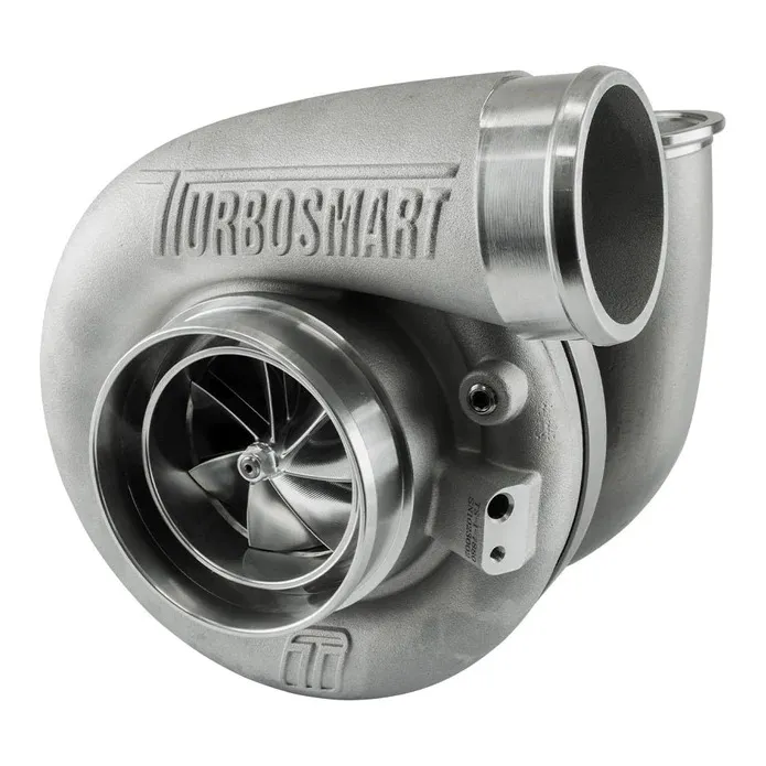Proprietary dual ceramic ball bearing system, oversized shaft hub with drastically improved oil sling, dual gas rings for improved gas sealing, optimised compressor backplate and compressor wheel integration for improved air management, tapered compressor wheels for increased strength, one piece integrated backplates for improved chassis rigidity. Turbosmart compressor housings are designed with velocity in mind to improve cylinder filling. Turbine housings are designed to compliemt Turbosmart's unique low pressure turbine wheel aerodynamics and reduce exhaust back pressure. 2618-T6 forged and CNC milled compressor wheels designed with aggressive aerodynamics leverage the ultra responsive bearing and shaft combination for increased airflow at all shaft speeds. Lightweight, aluminium compressor covers feature CFD drive and optimised A/R designs with anti-surge inlets, built-in speed and boost reference ports.