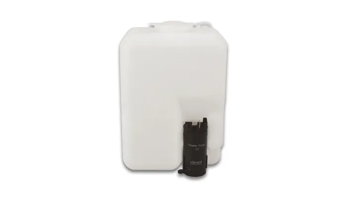 The factory windshield washer bottle installed on most vehicles is a major inconvenience for anyone who has ever installed a turbocharger or supercharger on their car, or simply needed to free up space in their engine bay, because they take up so much space. Many people simply remove it and hope they will never need it. Vibrant Performance now offers a choice of two compact universal washer bottle kits that include everything you need to replace the OEM bottle while freeing up some space. Each kit includes a high quality plastic washer bottle, electric pump, electric plug with wire, mounting bracket and a length of hose to adapt to the factory system.
