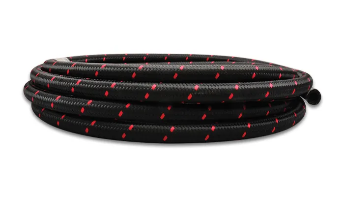 Vibrant Performance offers a range or Braided Synthetic Rubber Hose manufactured to withstand the demands of the motorsports industry. These hoses are available in your choice of 300 series Stainless steel Braided Cover for ultimate protection from abrasion and corrosion or a Black Braided Nylon Cover that is lightweight and durable. Vibrant Performance Braided Flex Hoses are suitable for use with oil, water, fuel, coolant and vacuum and are capable of handling temperatures ranging from -40 deg F to 300 deg F and elevated operating pressures.