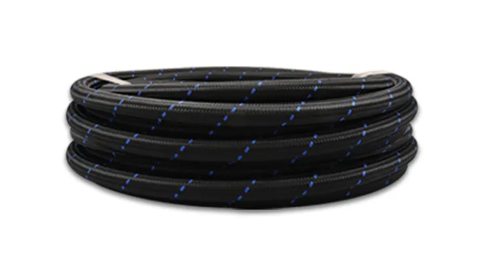 Vibrant Performance offers a range or Braided Synthetic Rubber Hose manufactured to withstand the demands of the motorsports industry. These hoses are available in your choice of 300 series Stainless steel Braided Cover for ultimate protection from abrasion and corrosion or a Black Braided Nylon Cover that is lightweight and durable. Vibrant Performance Braided Flex Hoses are suitable for use with oil, water, fuel, coolant and vacuum and are capable of handling temperatures ranging from -40 deg F to 300 deg F and elevated operating pressures.