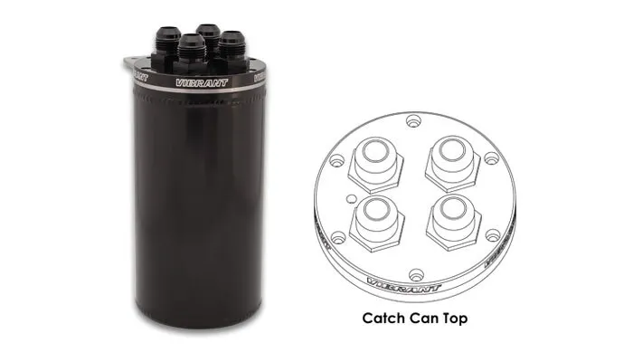 Vibrant Performance Universal Baffled Catch Can Assemblies are one of the most versatile catch cans on the market. Made entirely from 6061 Aluminum, Vibrant Performance Catch Cans come in two configurations. One that includes an internal baffle, two inlet -10 fittings and a filter for ventilation and one with an internal baffle only and four inlet -10 fittings. Both of our Catch Cans include a modular mounting bracket, dip stick; they are sealed (great for expansion tanks), and include a bottom drain that is convenient for oil return & recirculation.