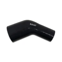 Vibrant Performance Aramid Reinforced Silicone 45° Transition Elbows feature High Temperature Resistant Aramid Reinforcement Fabric between each layer of silicone which allows for an impressive Operating Temperature Range of -75° F to 392° F (-60° C to 200° C). These elbows are intended for use in applications where pressurized tubing and connection points require a tight radius bend and size transition to accommodate the installation of piping in limited space. Not suitable for use with Oil/Fuel.