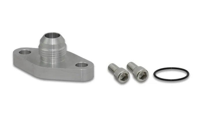 Vibrant Performance Oil Drain Flanges feature 6061 Aluminum construction and includes a pair of M8 x 1.25 button-head cap screws for easy installation. Oil Drain Flange Gaskets are sold separately and suitable for max. operating temperatures of 500°F (260°C).