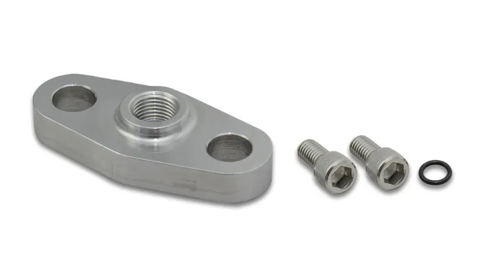 Vibrant Performance Oil Feed Flanges feature 6061 Aluminum construction and includes a pair of M8 x 1.25 button-head cap screws for easy installation. All flanges are tapped for 1/8" NPT Male Fittings.
