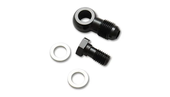 Vibrant Performance Single Banjo Adapter Assemblies are manufactured from 6061 Aluminum Alloy and are perfectly suited for connecting AN Fuel Lines to your Fuel System. These fittings are lightweight, durable and provide a positive seal. Available in a wide variety of sizes for any application. Offered in Black Anodized finish only. Includes two Crush Washers.