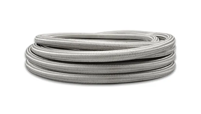 Vibrant Performance offers a range or Braided Synthetic Rubber Hose manufactured to withstand the demands of the motorsports industry. These hoses are available in your choice of 300 series Stainless steel Braided Cover for ultimate protection from abrasion and corrosion or a Black Braided Nylon Cover that is lightweight and durable. Vibrant Performance Braided Flex Hoses are suitable for use with oil, water, fuel, coolant and vacuum and are capable of handling temperatures ranging from -40 deg F to 300 deg F and elevated operating pressures.