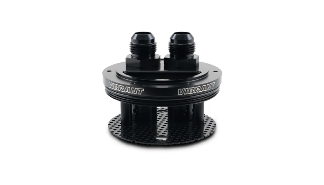 Vibrant Performance's Gen3 Catch Can Lids are available in 2-port or 4-port thread-on configurations. Our 2-port lid comes with two -12 AN male to -12 ORB male fittings and two -12 ORB filter barrels with filter material. Our 4-port lid comes with four -12 AN male to -12 ORB male fittings and four -12 ORB filter barrels with filter material. Both configurations are internally baffled.