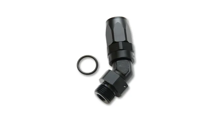 Vibrant Performance swivel-style Tight Radius Forged Hose End Fittings are lightweight and constructed entirely from 6061 Aluminum Alloy. Our Tight Radius Forged Hose End Fittings deliver quality, reliability, smooth flow, ease of assembly and the comfort of an anti-leak seal. All Vibrant Performance hose end fittings are available in anodized black only.