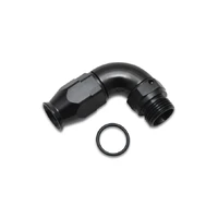 Vibrant Performance 90 Degree High Flow Swivel Hose End Fittings are lightweight and constructed entirely from 6061 Aluminum Alloy. Our 90 Degree High Flow Swivel Hose End Fittings deliver quality, reliability, smooth flow, ease of assembly and the comfort of an anti-leak seal. All Vibrant Performance hose end fittings are available in anodized black only. These Hose Ends are for use with Vibrant PTFE lined flex hoses and include an O-Ring seal.