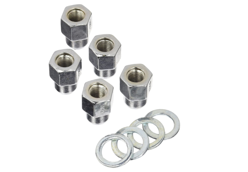 Lug Nut - 12 mm x 1.50 Right Hand Thread - 13/16 in Hex Head - Shank Seat - Opened End - Washers Included - Steel - Chrome - Set of 5