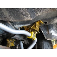 Whiteline heavy duty rear sway bar mounting saddle kits are designed to replace the original equipment mounts with a stronger more rigid forged alloy version. This Whiteline kit improves sway bar response and should be used for large diameter or adjustable sway bars especially when running the stiffer sway bar settings as factory mounts will twist/ flex and potentially fail prematurely.