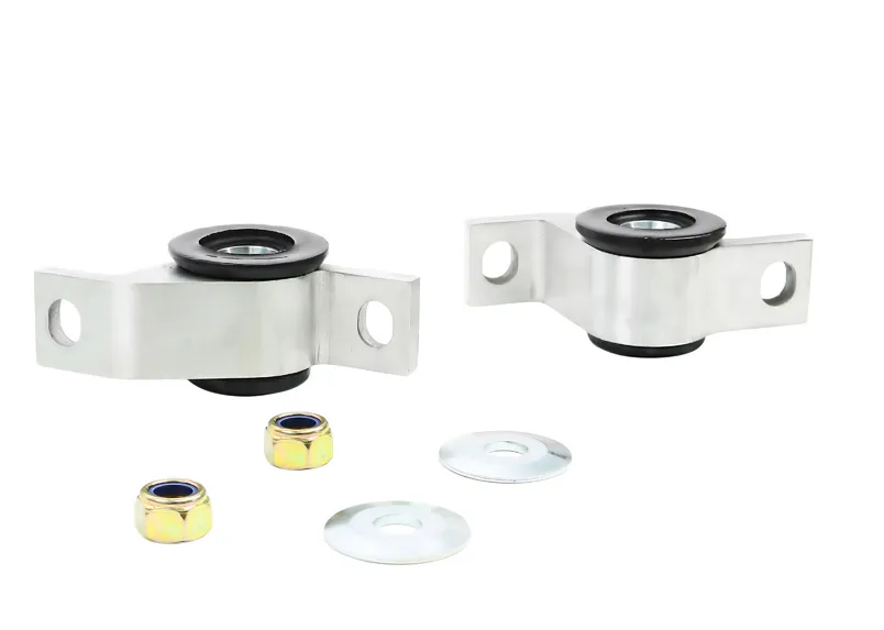 MOTORSPORT ONLY - Whiteline Anti Lift Kits are primarily designed to improve traction and cornering grip under power. By increasing static caster and improving front end geometry the new alloy mounts coupled with low compliance synthetic elastomer bushings serve to dramatically sharpen initial turn-in response and reduce understeer.