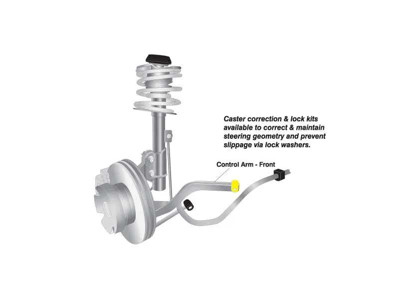 Whiteline caster kits are designed to improve cornering grip and vehicle straight line stability through increased static caster and dynamic negative camber gain. In addition, synthetic elastomer bushings provide improved steering feedback and braking performance.