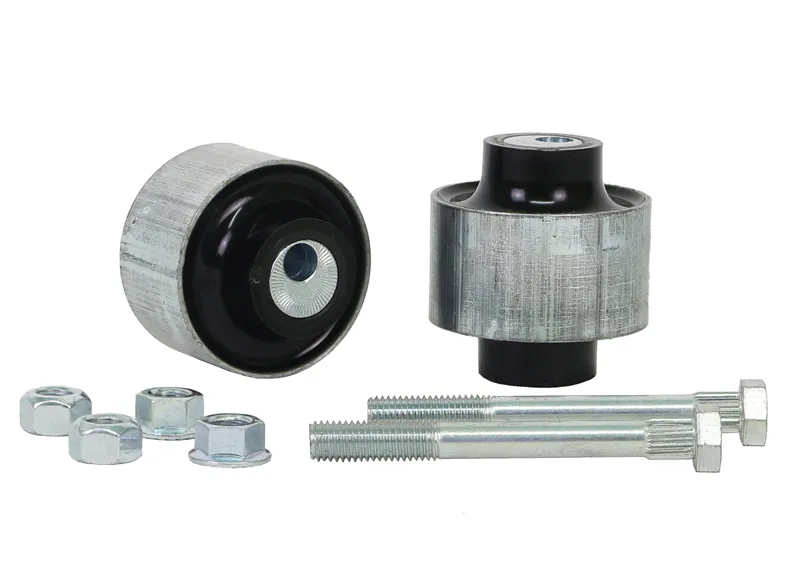 Whiteline caster kits are designed to improve cornering grip and vehicle straight line stability through increased static caster and dynamic negative camber gain. In addition, synthetic elastomer bushings provide improved steering feedback and braking performance.