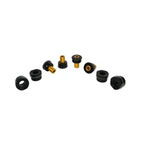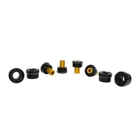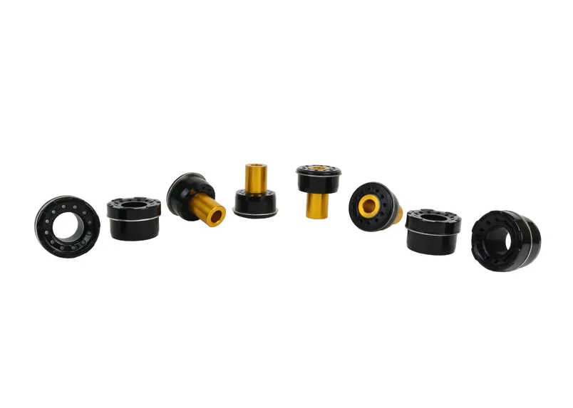 Subaru's rear subframe is mounted on rubber voided bushings which allows for a significant amount of compliance/movement in the frame during high cornering loads. Whiteline's low compliance polymer bushings eliminate this condition by positively locking in the frame position and removing the 'lateral walking' found when using high grip tires. The polymer bushing design has soft 'stand-off' buffers on the top and bottom surfaces of the bushing to allow slight vertical bushing movement of the subframe to eliminate that 'rock-solid' NVH feel and cushion against minor bumps and allow solid positive location when high torque and power is applied.